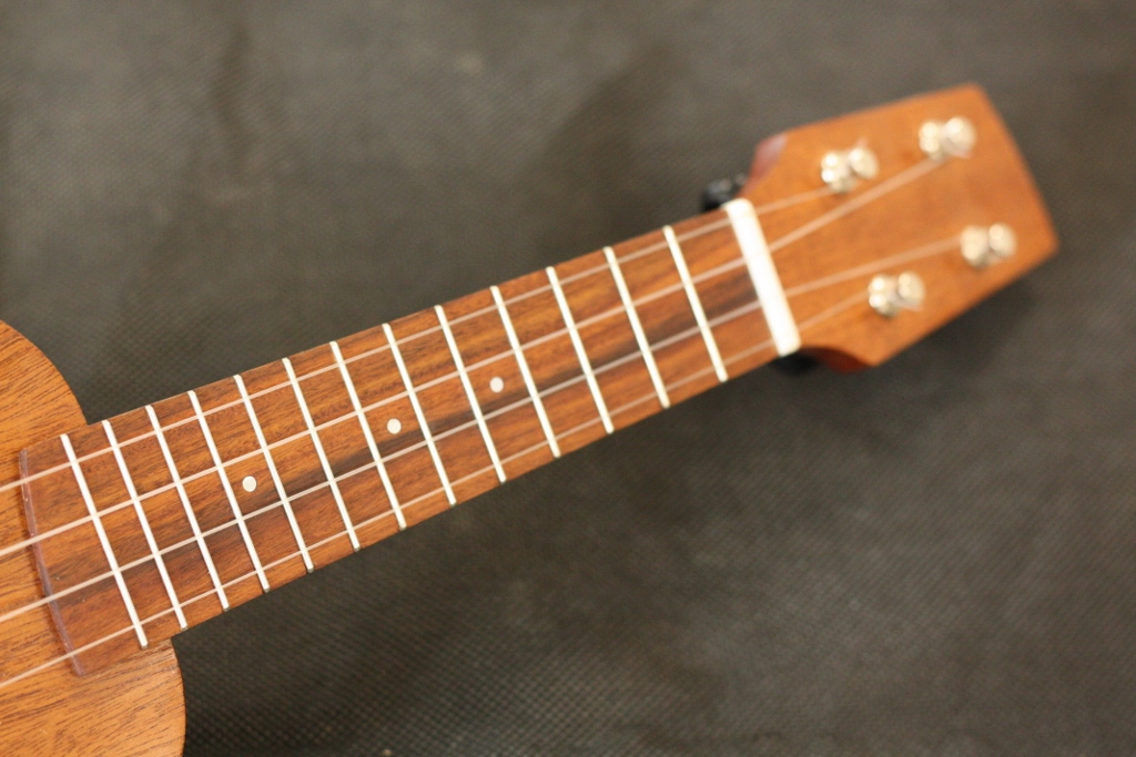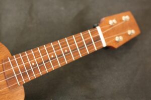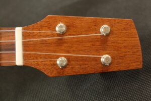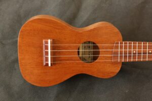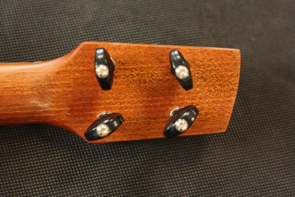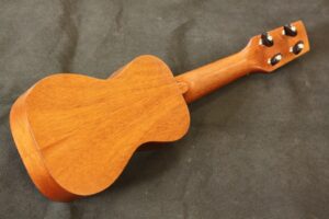 A handmade sopranino ukulele in reclaimed Brazilian mahogany by UK luthier Rob Collins.